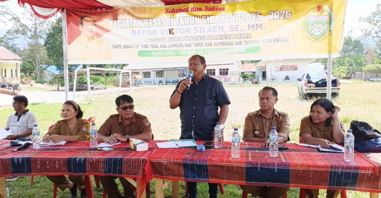 Toba, KawalSumut.com ~ Anggota DPRD Provinsi Sumatera Utara dari Daerah Pemilihan (Dapil) IX, Victor Silaen, SE, MM, melaksanakan Reses II Tahun Sidang II 2025–2026 pada Selasa (10/2/2026) di Lapangan Parbalean, Desa Silaen, Kecamatan Silaen. Kegiatan yang merupakan bagian dari agenda reses DPRD Sumut pada 5–14 Februari 2026 ini bertujuan menyerap aspirasi masyarakat secara langsung.